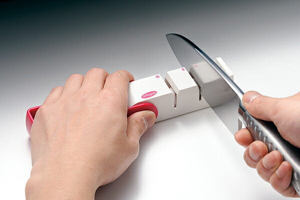 Tojiro Shaple Diamond and Ceramic Knife Sharpener for 3-step sharpening, pink.