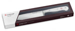 The Wüsthof Classic knife series with white handles adds a special touch to the kitchen. With sophisticated simplicity and stunning elegance, these timeless knives offer everything you need to prepare and serve fresh dishes. They are perfectly balanced, comfortable to hold, and easy to control, while preparing ingredients for any dish. Robust, sharp and functional - the classic kitchen tool series that stands out for its ease of use and is the right tool for every home cook and professional. Blade forged from a single piece of stainless steel (X50CrMoV15) with a hardness of 58 HRC. This special, high-carbon, corrosion-resistant alloy ensures that the critical properties of every Wüsthof knife are retained from the start: razor-sharp, long-lasting cutting edge, high rust resistance, easy to restore edge. They are made in 55 sophisticated production steps: from forging to hardening and sharpening to polishing, and every perfectly manufactured Classic knife undergoes more than 20 uncompromising quality control points. Particularly sharp thanks to the Precision Edge Technology (PEtec) laser-controlled sharpening process. The hand-finished finish by experienced Wüsthof craftsmen ensures exceptional sharpness, fast and easy cutting. They have grip panels made of a comfortable and durable synthetic material, polyoxymethylene (POM) - which has a more compact molecular structure to resist fading and discoloration. The full-length bakni protects the hand, ensuring safety and balanced weight distribution. The robust grip panels are triple riveted for durability. Wüsthof technology offers outstanding sharpness: extremely high initial cutting performance, exceptionally long edge retention, long blade life, optimal cutting edge along the entire length of the blade, unique, consistently high and reproducible quality. It is made entirely in Solingen, Germany. The Wüsthof Classic series is certified by the NSF (National Sanitation Foundation) for public health and food safety.