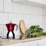 Serving as a global symbol of Italian coffee culture, the classic Moka pot has been brilliantly updated for modern kitchens. This vibrant red edition brings a bold, modern aesthetic to the famous design while introducing a revolutionary bi-layer boiler. The unique construction features an aluminum inner layer for perfectly even heat distribution, seamlessly paired with a durable stainless steel outer base that makes it fully equipped for induction setups straight out of the box.