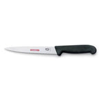 Victorinox Fibrox Filleting knife with flexible 20 cm blade and black non-slip, ergonomic plastic handle.