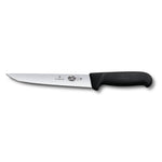 Victorinox Fibrox paring knife with a straight edge 18 cm long blade and black synthetic handle.