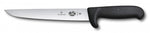Victorinox Fibrox paring knife with a straight edge 20 cm long blade and a black handle with a safety finger guard.